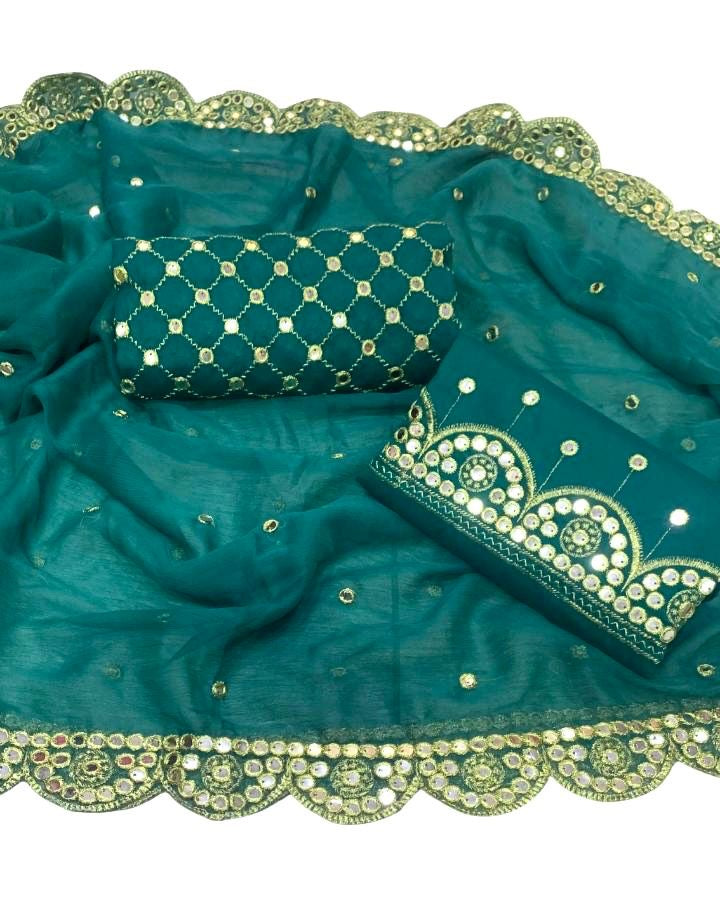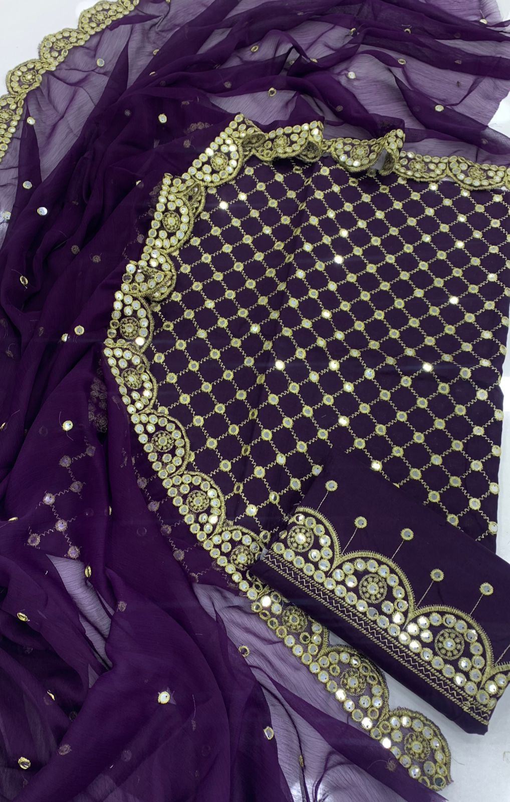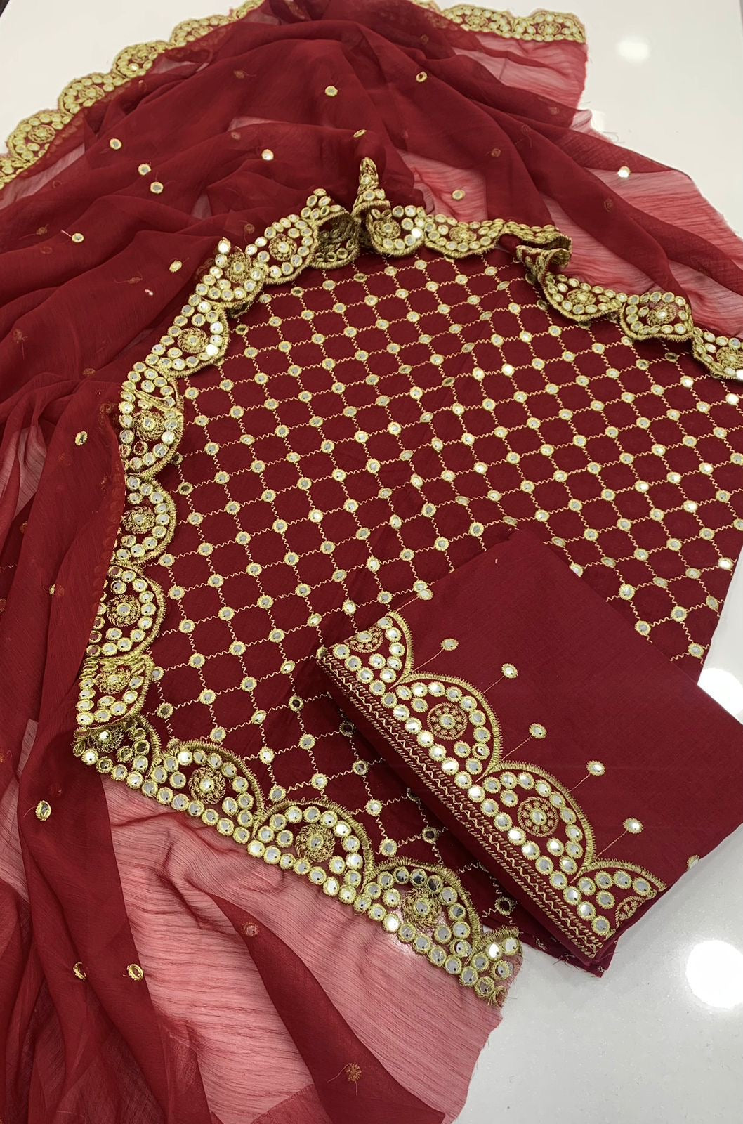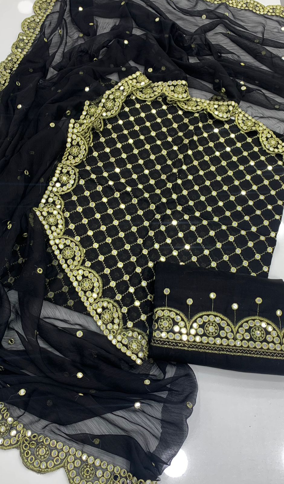 9MM Zarri Sitara Full Jaal Embroidered Soft Cotton Stuff Shirt, Two Side Cutwork Zarri Sitara Border Fancy Chiffon Dupatta, Soft Cotton Zarri Siatara Embroiderd Trouser 3pc Fancy Dresses 👗