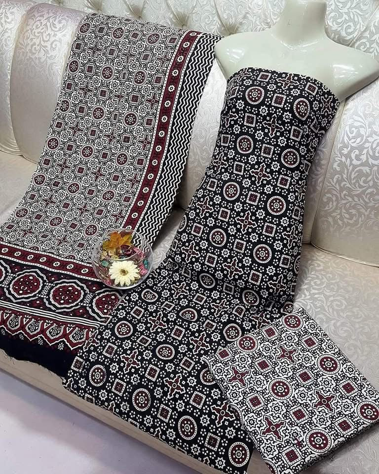 Bring tradition and elegance to your wardrobe with this Ajrak Block Print Winter Suit. Crafted in premium soft cotton fabric, this suit offers both comfort and style for the winter season. The timeless Ajrak block print design reflects the rich heritage of Sindhi culture, making it a perfect choice for casual wear, get-togethers, and festive occasions.