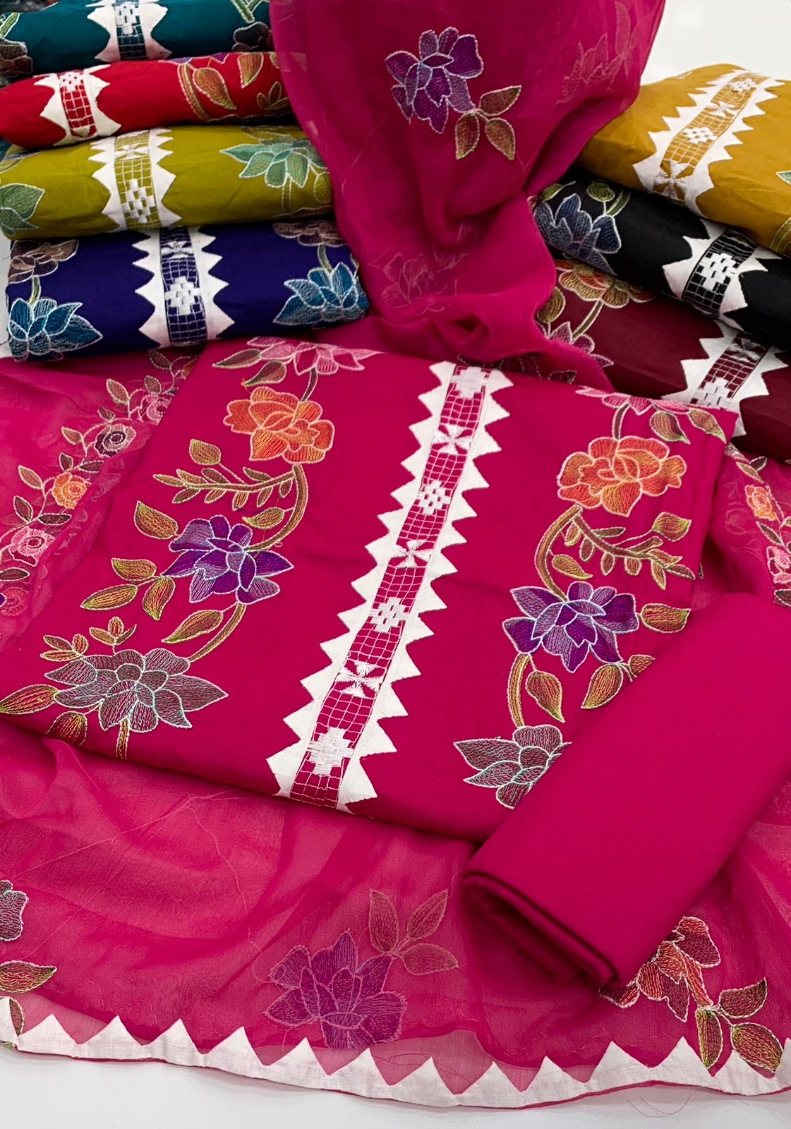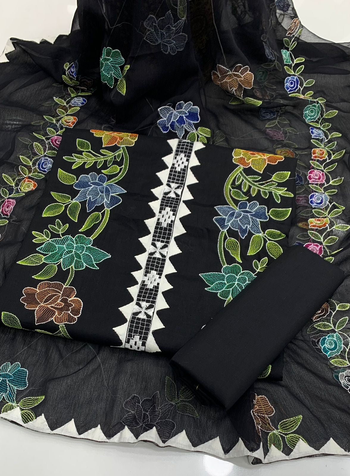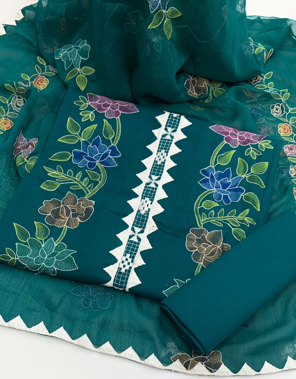 Kacha Tanka Flower Machine Embroidered With Applic Handwork 3pc Dress 👗
