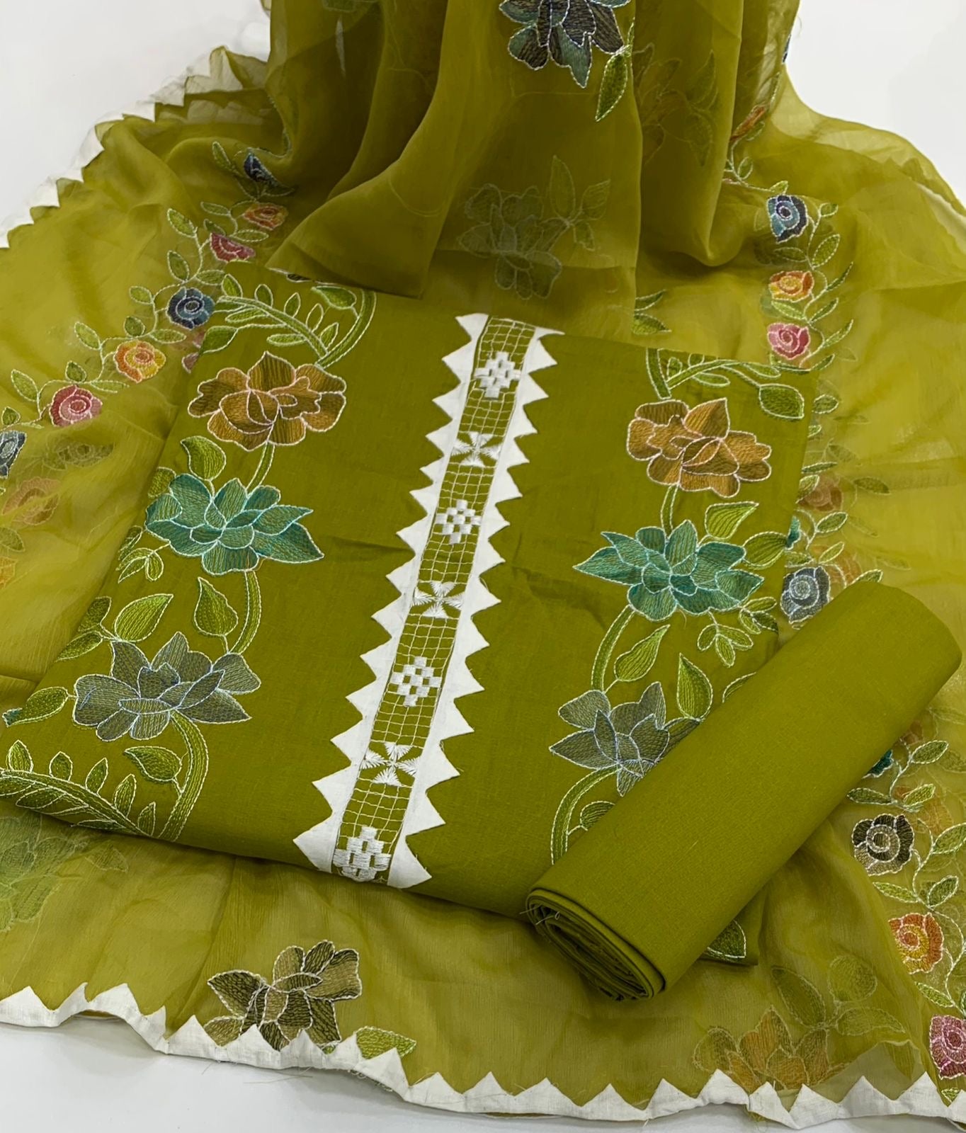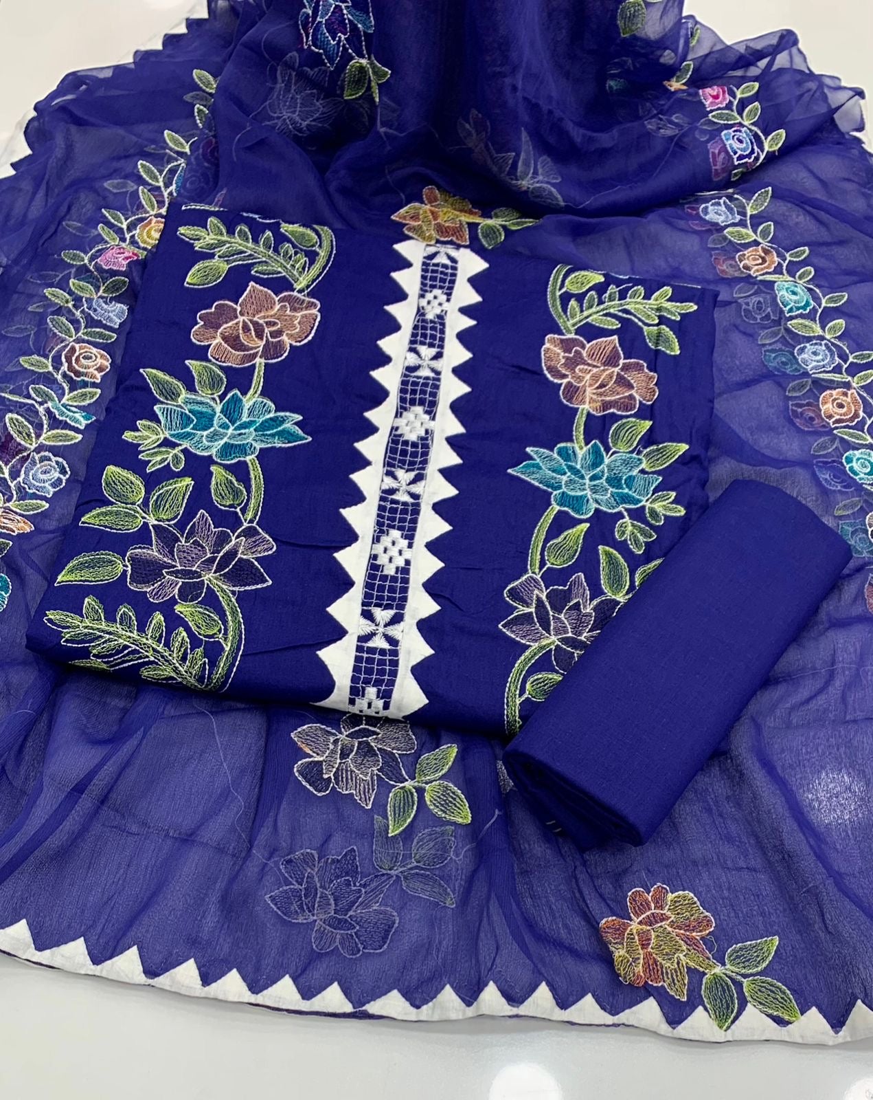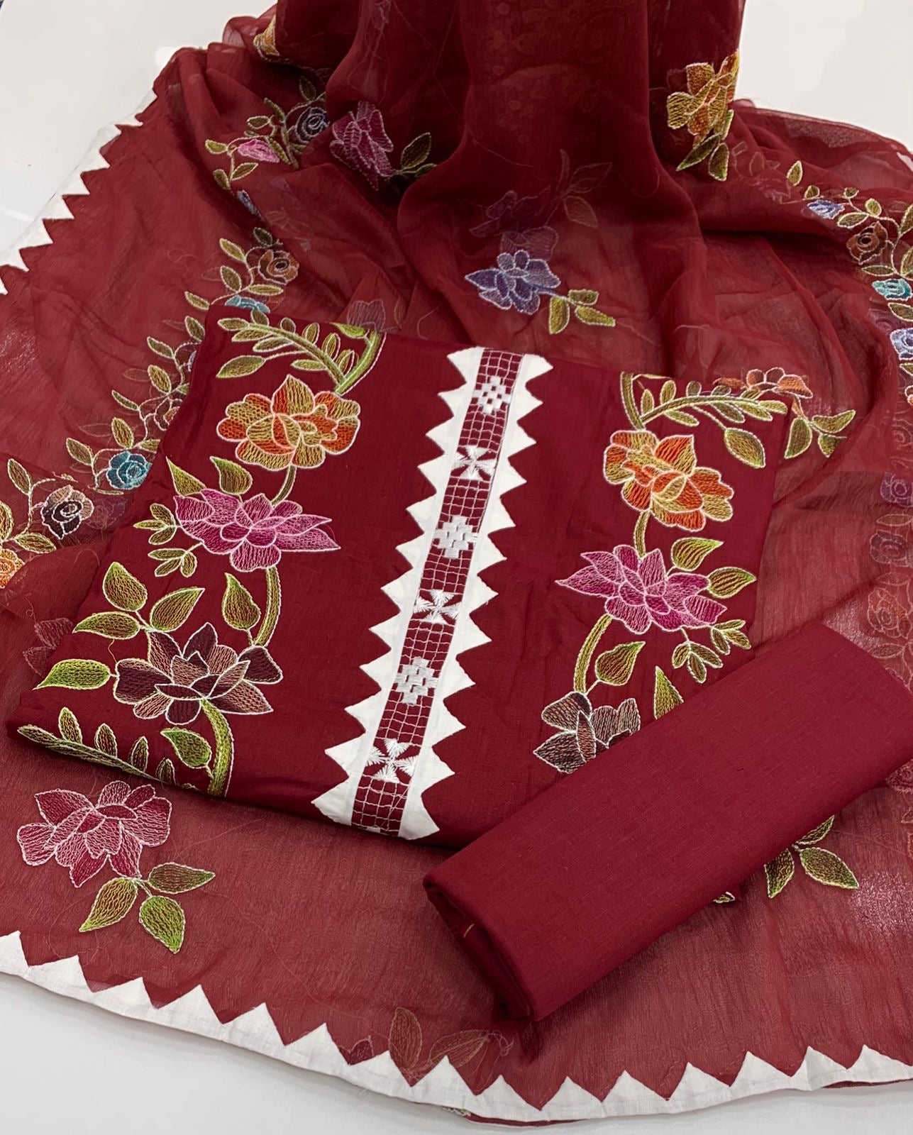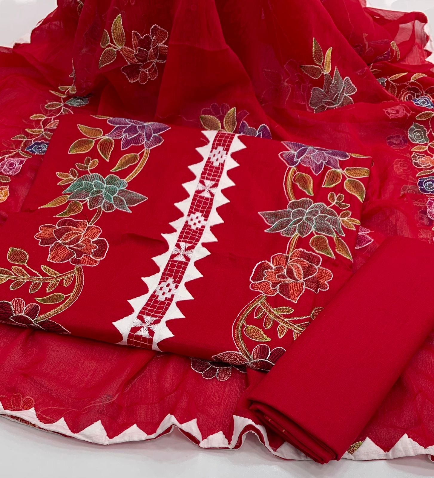 Kacha Tanka Flower Machine Embroidered With Applic Handwork 3pc Dress 👗