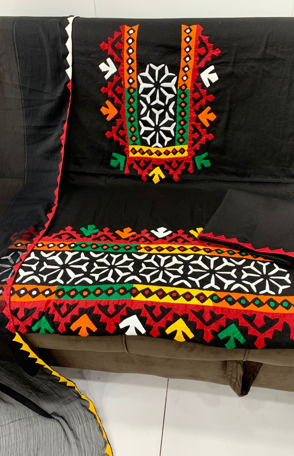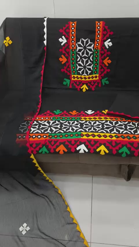 Heavy Multi Applic Handmade Gala Daman Work 3pc Dress 👗