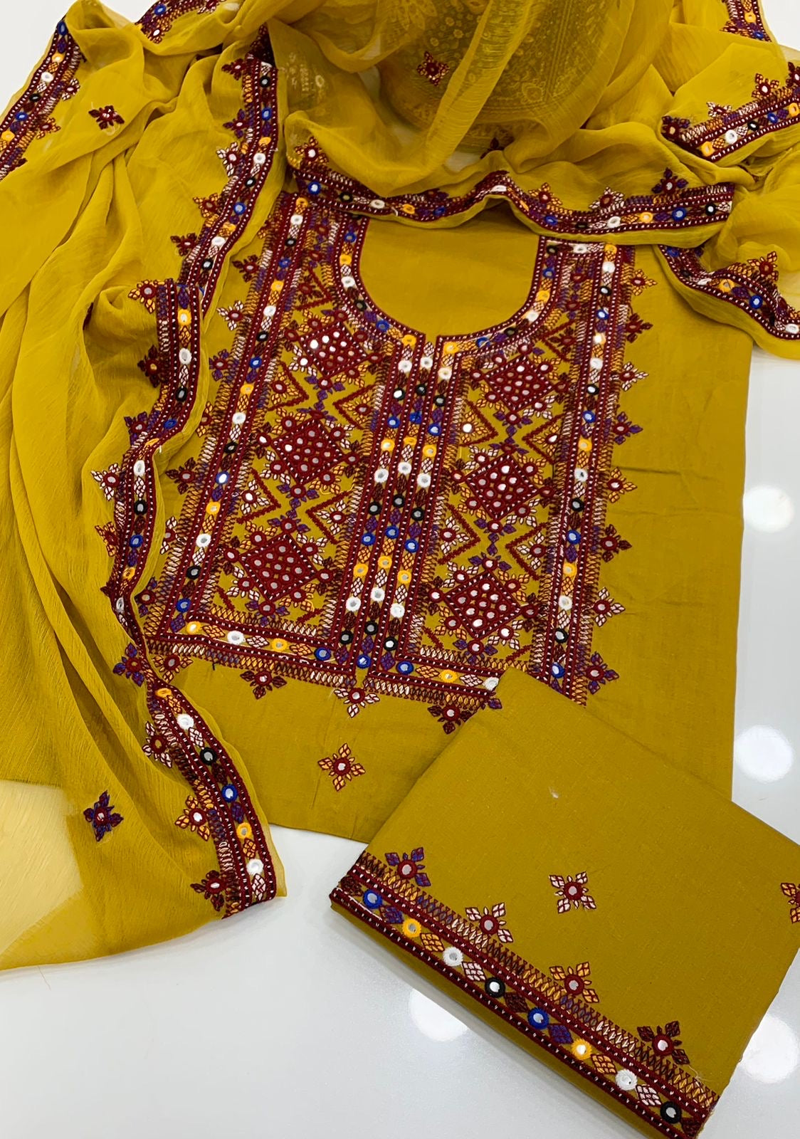 - Fabric: Soft Cotton (Shirt & Trouser), Soft Chiffon (Dupatta)